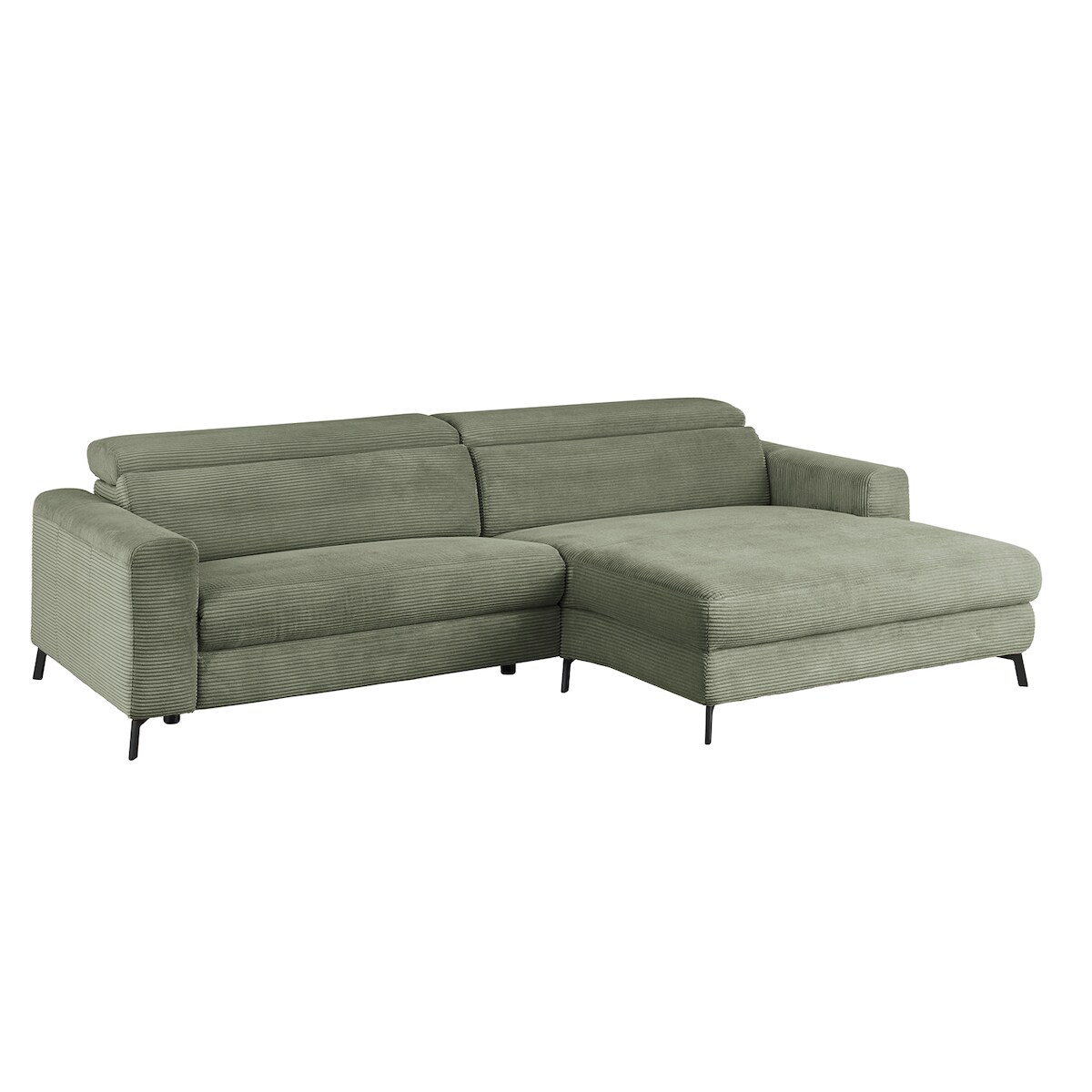 KAWOLA Sofa LAISKA Ecksofa Cord olivgrün Longchair rechts