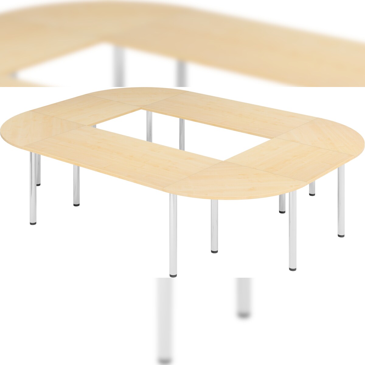 bümö Konferenztisch O-Form 320x240 cm großer Besprechungstisch in Ahorn, Besprechungstisch mit Chromfüßen, Meetingtisch für 10 Personen, Tisch für