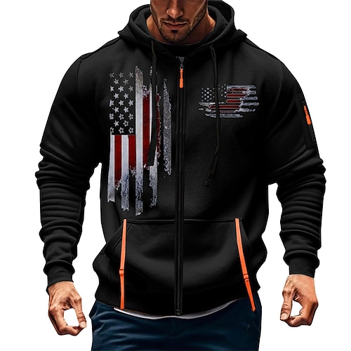 Per uomo Felpa con cappuccio Felpa con cappuccio a zip intera Nero Bianco Vino Verde militare Blu marino Con Cappuccio Bandiera Nazionale Cerniera Tasca Sport Outdoor Quotidiano Ferie Poliestere