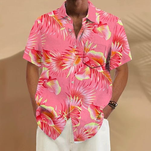 Per uomo Foglia di palma Piante Tropicali Fiori Camicia hawaiana estiva Camicia con Bottoni Camicia Aloha Manica Corta Hawaiano Ferie Abbigliamento mare Estate Primavera Collo ripiegato Stampa 3D