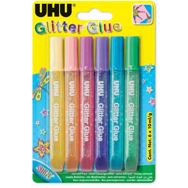 UHU Glitzerkleber Glitter Glue Shiny, Inhalt: 6 x 10 ml