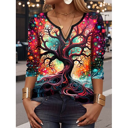 Per donna Maglietta Grafico Piante Vintage Elegante Classico Manica Lunga Scollo a V Collo a V Top Regolari Quotidiano Stampato Giallo Rosso Viola Verde Primavera Autunno