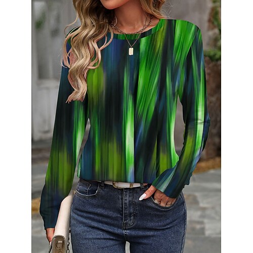 Per donna Maglietta Grafico Geometria Vintage Elegante Moderno Manica Lunga Girocollo Top Regolari Quotidiano Weekend Stampato Blu Viola Verde Primavera Inverno