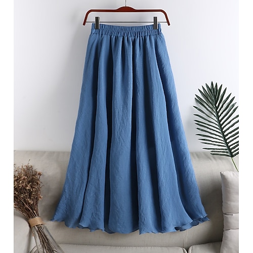 Per donna Altalena a dondolo Gonna lunga Gonne di lino Medio Gonne Increspato A pieghe Tinta unita Giornaliero Per uscire Primavera estate Misto cotone Misto cotone e lino Di tendenza Essenziale