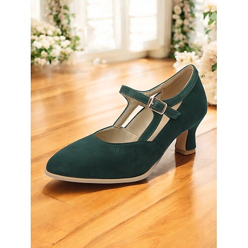décolleté mary jane vintage blu con cinturino a T da donna – décolleté in pelle scamosciata con tacco medio e chiusura con fibbia per un uso retrò, formale e quotidiano
