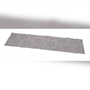 Tischläufer, Sterne, bestickt, grau / rot, 40 x 150 cm, "Germany", handgefertigt