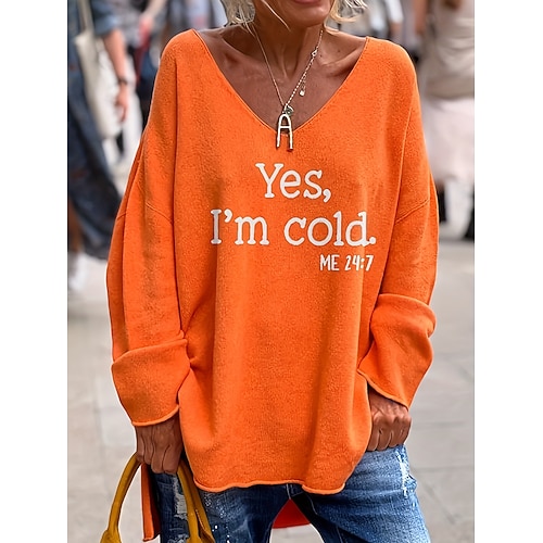 Per donna Maglietta Grafico Lettera Elegante Vintage Moda Manica Lunga Scollo a V Top Regolari Quotidiano Weekend Stampato Rosa Arancione Verde Grigio Primavera Autunno