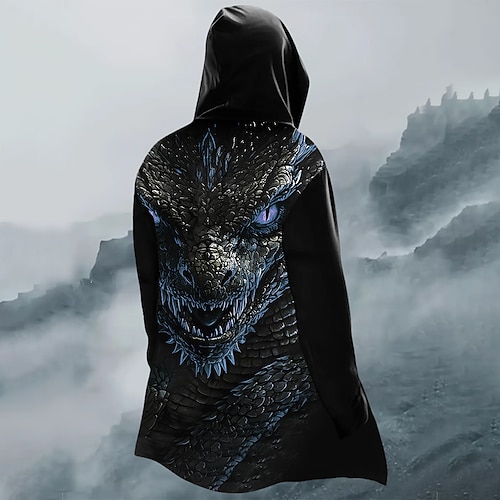 Per uomo Drago Cappotto Invernale Giacca in Pile Cappotto Calore Termico Confortevole Casual Streetwear Abbigliamento quotidiano Cerniera Tasca Stampa 3D Autunno Inverno Con Cappuccio Manica Lunga