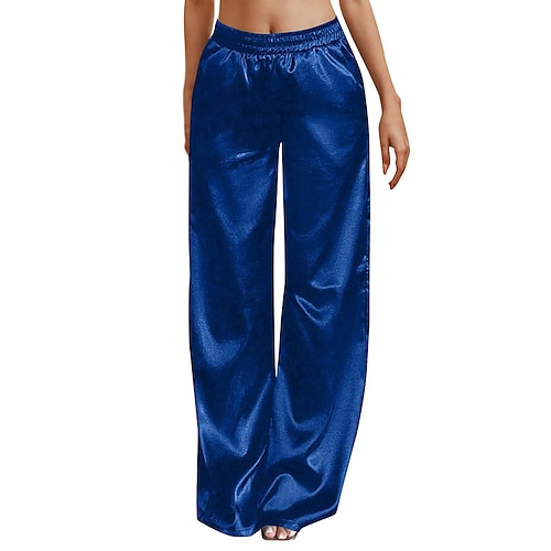 Per donna Gamba larga Pantaloni Streetwear Casual Lunghezza intera Vita Alta Tinta unica Tasca Traspirabilità Morbido Micro-elastico Vacanza Streetwear Abbigliamento quotidiano Nero Rosso Marrone