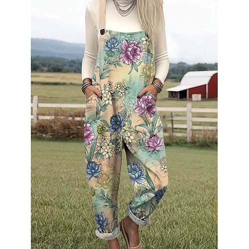 Per donna Tuta Attivo Floreale Senza Maniche Girocollo Tasca Stampato Vacanza Quotidiano Vestibilità comoda Giallo Blu Arancione Primavera