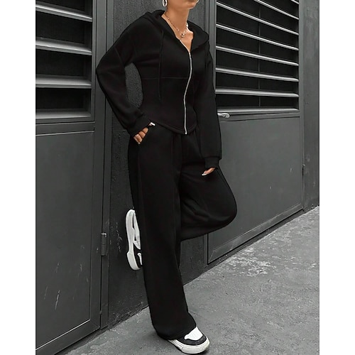 Per uomo Set coordinati Nero Felpa con Cappuccio Pantaloni da tuta Pantaloni da Tuta a Gamba Larga Pantaloni Set Manica Lunga Con Cappuccio All'aperto Vacanza Semplice Tasca 2 Pezzi Poliestere