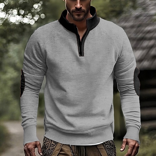Per uomo Maglia Felpa con zip corta Aalbicocca Nero Blu marino Cammello Grigio chiaro Mezza zip Blocco di colori Patchwork Sport Outdoor Quotidiano Ferie Poliestere Streetwear Essenziale Casual