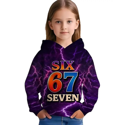 Unisex Ragazze 3D Grafico Gergo divertente 67 Felpa con Cappuccio Maglione Manica Lunga Stampa 3D Primavera Autunno Sport Moda Streetwear Bambini 4-12 Anni Con cappuccio All'aperto Casuale Quotidiano