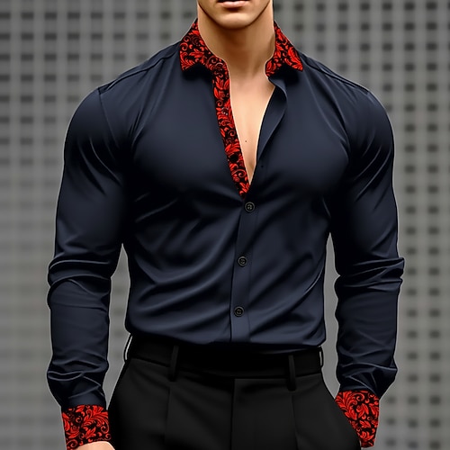 Per uomo Stampa Floreale Barocco Fiori Camicia Camicia in raso Camicia elegante Manica Lunga Vintage Retrò Vacanza Abbigliamento Quotidiano Estate Primavera Autunno Collo ripiegato Stampa 3D Camicie