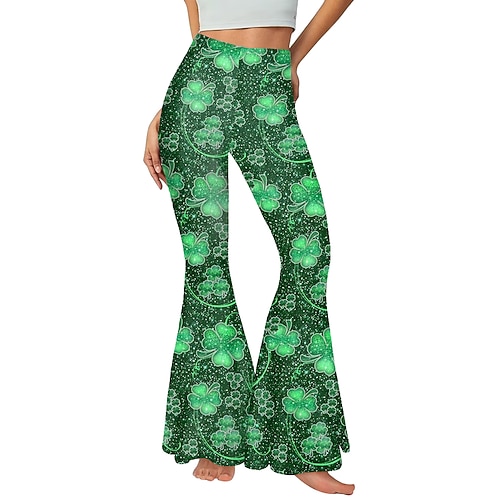 San Patrizio 2026 Trifoglio Irlandese fortunato Carnevale Pantaloni a zampa d'elefante Pantaloni a zampa Innovativo Divertente Adulti Per uomo Giorno di San Patrizio Casuale Feste Costume di