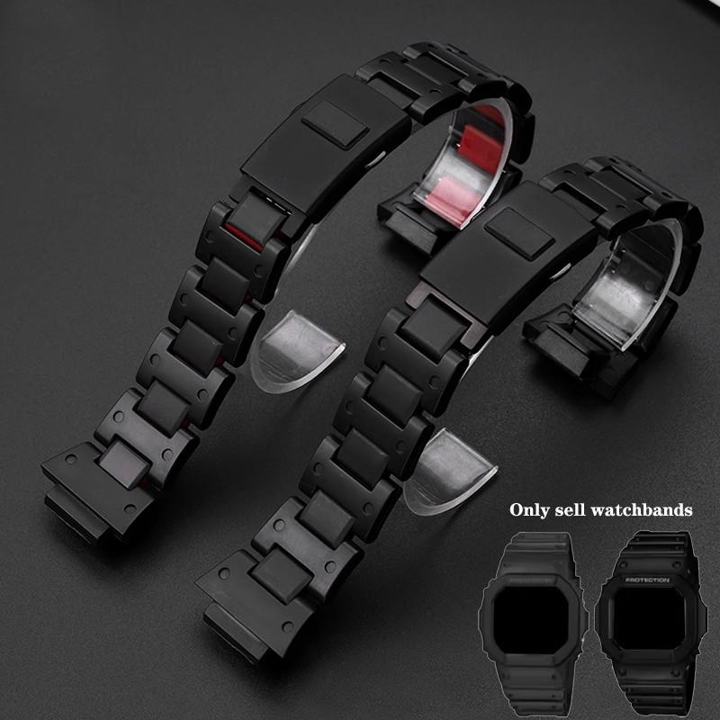 For Casio reim G-SHOCK GA-2100 DW5600 DW-6900 GW-M5610/B5600 Svart plast stål Klokkereimer menn Sports erstatning Armbånd Svart