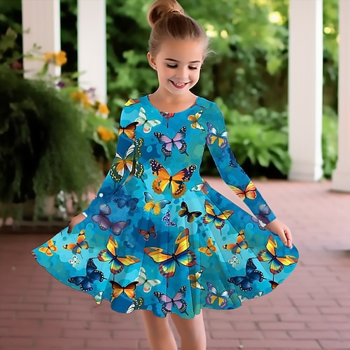 ragazze' 3D Farfalla Vestito Manica lunga Stampa 3D Autunno Inverno Sportivo Giornaliero Per eventi stile sveglio Informale Bellissimo Bambino 3-12 anni Abito casual Abito linea A Sopra il ginocchio
