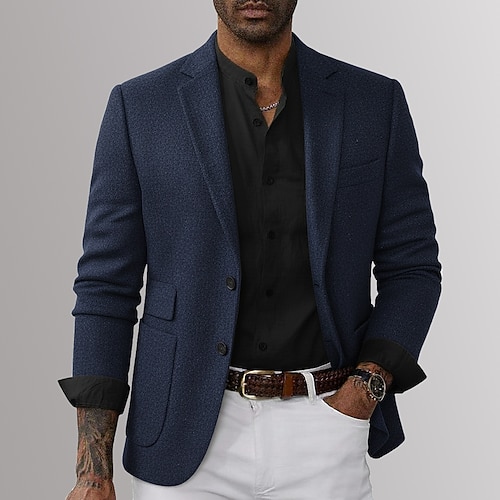 Per uomo Blazer in Tweed Colletto ad incastro Moda Classico Casual Tinta unita Blazer Nero Borgogna Marrone Vestibilità su misura Monopetto Due Bottoni