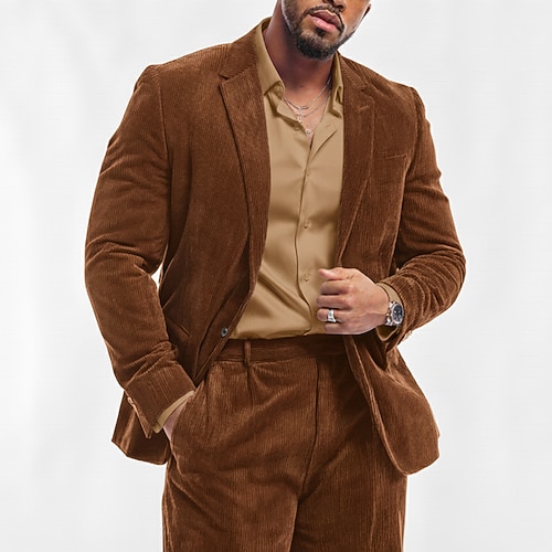 Uomo Affari Casuale Abito in velluto a coste Bavero classico Nero Borgogna Affari Casual Tinta unita Vestibilità su misura 2 pezzi Monopetto a un bottone