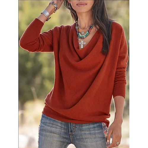 Per donna Blusa Tinta unica Elegante Casual Manica Lunga Scollo a Cascata Top Regolari Quotidiano Arricciato Giallo Rosa Rosso Blu Arancione Estate Primavera Autunno