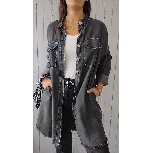 Per donna Blusa Semplice Vintage Quotidiano Elegante Manica Lunga Colletto a Camicia Top lunghi Quotidiano Ferie Uscire Tasca Bottoni Blu Nero Grigio Azzurro Estate Primavera Autunno