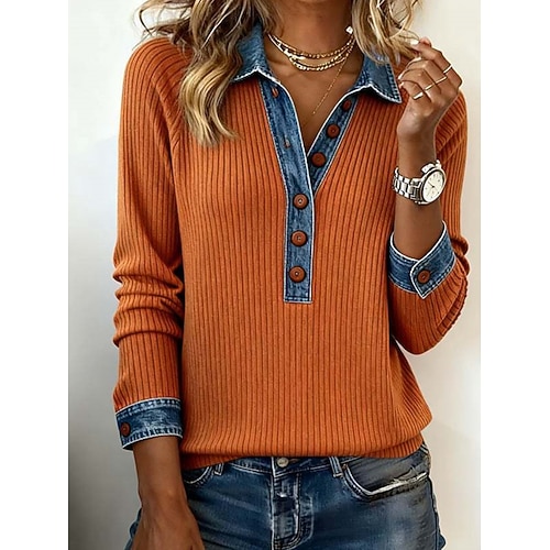 Per donna Blusa Blocco di colori Elegante Casual Manica Lunga Colletto a Camicia Top Regolari Quotidiano Patchwork Nero Bianco Giallo Rosso Arancione Primavera Autunno Inverno