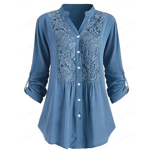 Per donna Camicia Blusa Semplice Elegante Manica Lunga Scollo a V Top Regolari Quotidiano Ferie Uscire Arricciato Pizzo Bottoni Blu Nero Bianco Vino Viola Primavera Autunno Inverno