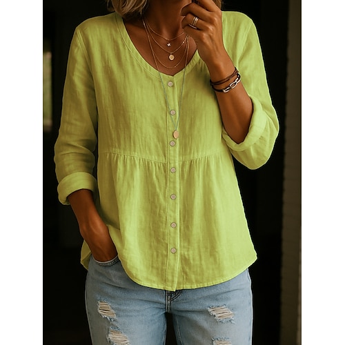 Per donna Blusa Tinta unica Elegante Casual Manica Lunga Scollo a V Top Regolari Quotidiano Bottoni Bianco Giallo Rosa Verde Estate Primavera Autunno