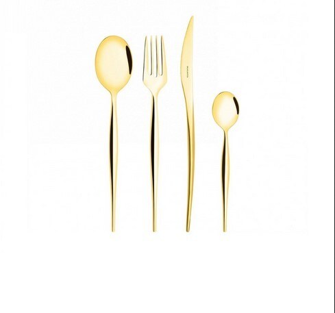 natura gold, 24-teiliges, poliertes, vergoldetes stahlbesteckset, in einer fensterbox, casa bugatti