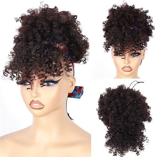Coda di cavallo con coulisse per donne nere, coda di cavallo afro con ciocca crespa e riccia, estensione con frangia, acconciatura nera, coda di cavallo con capelli naturali