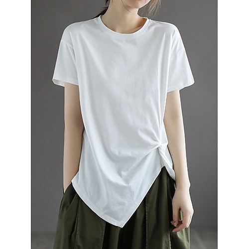 Per donna Maglietta Tinta unica Moda Elegante Classico Manica Corta Girocollo Top Regolari Quotidiano Weekend Arricciato Nero Bianco Cachi Estate Primavera