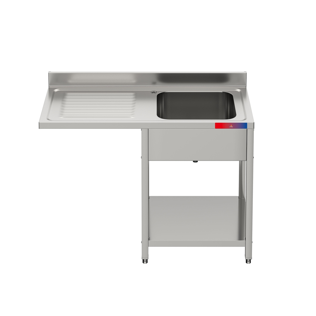 Gasfrit – Unterbau-Spülbecken mit 1 Becken und 1 Abtropffläche, Armatur mit zwei industriell, aus Edelstahl, 1200 x 600 x 850 mm.
