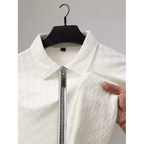 Per uomo Polo Testurizzato Casuale Ferie Bavero Zip a un quarto Manica Corta Moda Essenziale Pied-de-poule Zip a un quarto Estate Primavera Tutte le stagioni Vestibilità regolare Nero Bianco Giallo