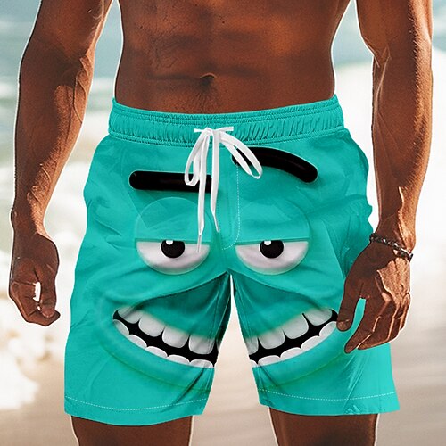 Per uomo Fantasia Cartone 3D Faccia Sorridente Costumi da bagno Pantaloncini da mare Pantaloncini da Surf Misura del girovita medio Divertente All'aperto Vacanza Abbigliamento Quotidiano Tasche