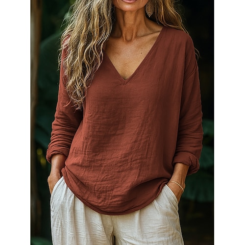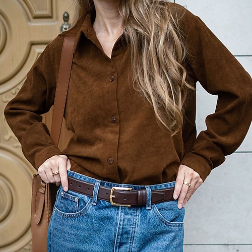 Per donna Camicia Blusa Semplice Elegante Manica Lunga Colletto a Camicia Top Regolari Ferie Uscire Bottoni Marrone Primavera Autunno Inverno