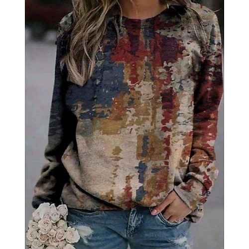 Per donna Blusa Grafico Tinta a nodi Quotidiano Elegante Casual Manica Lunga Girocollo Top Regolari Quotidiano Ferie Uscire Stampa 3D Nero Rosa Rosso Blu Grigio Primavera Autunno