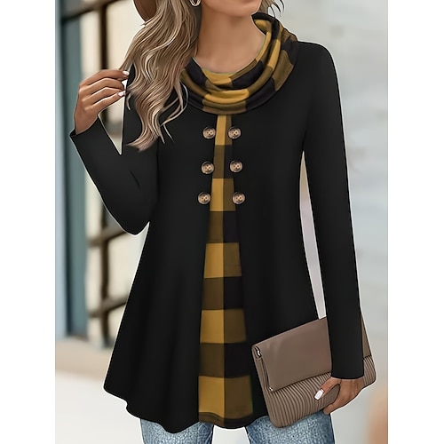Per donna Blusa Plaid Elegante Casual Manica Lunga Scollo a Cascata Top Regolari Quotidiano Bottoni Stampato Bianco Rosso Blu Verde Cachi Primavera Autunno Inverno