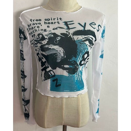 Per donna Blusa Grafico Astratto Vintage Elegante Sexy Manica Lunga Girocollo Top corti Ferie Uscire Rete Nero Bianco Giallo Verde Estate Primavera Autunno