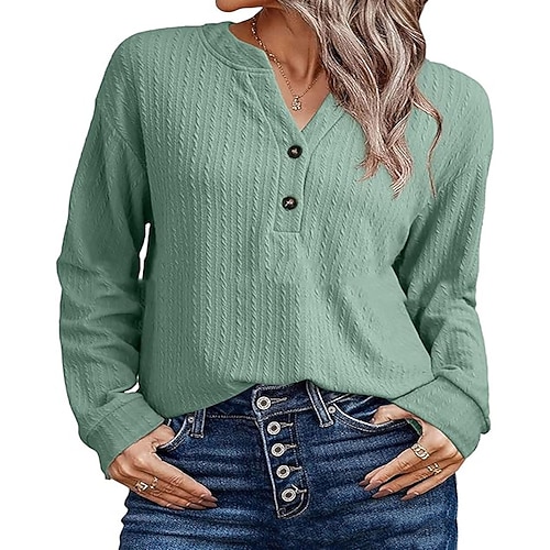 Per donna Blusa Semplice Elegante Vintage Sexy Manica Lunga Scollo a V Top Regolari Ferie Uscire Bottoni Argento Verde primavera Nero Bianco Rosa Estate Primavera Autunno