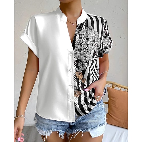 Per donna Camicia Blusa Grafico Blocco di colori Vintage Elegante Manica Corta Scollo a V Top Regolari Quotidiano Ferie Uscire Patchwork Blu Nero Bianco Rosa Rosso Estate Primavera
