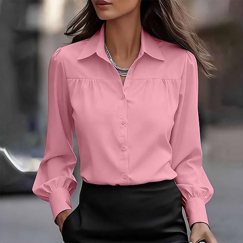 Per donna Camicia Blusa Semplice Elegante Moderno Manica Lunga Colletto a Camicia Top Regolari Ferie Uscire Volant Nero Bianco Rosso Verde Rosa Autunno