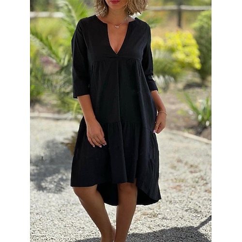 Per donna Blu Nero Arancione Estate Primavera Abito Midi Misto cotone Abito estivo in cotone Casual Vacanza Vestibilità comoda Semplice Collo a Spacco