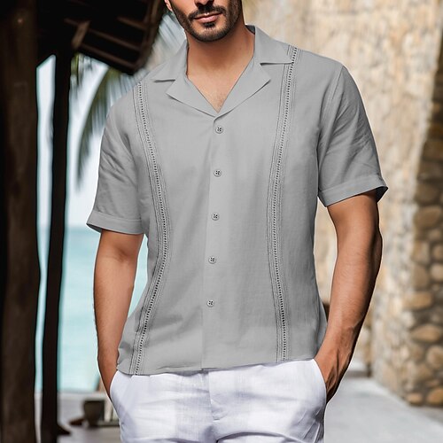 Per uomo Camicia Camicia Guayabera Camicia Estiva Camicia da Spiaggia Semplice Vacanza Casuale Nero Bianco Grigio Azzurro Manica Corta Colletto Estate Primavera Abbigliamento