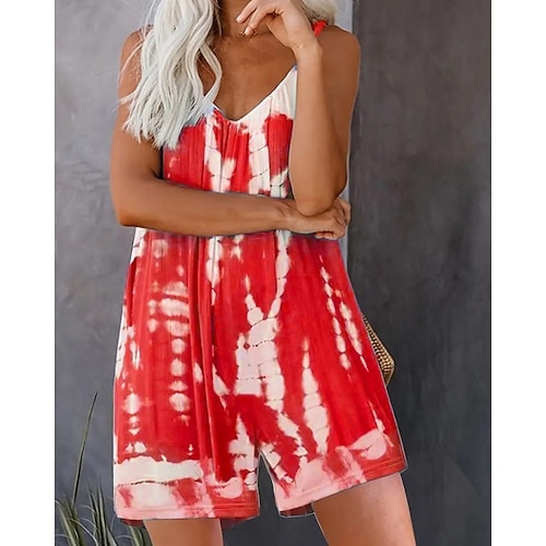 Per donna Normale Pagliaccetto Streetwear Tinta a nodi Senza Maniche Scollo a V Stampato Streetwear Quotidiano Vestibilità regolare Verde chiaro Rosa Rosso Estate