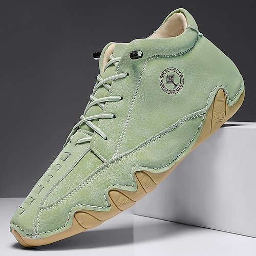 scarpe da ginnastica alte casual verdi da uomo in similpelle – scarpe con lacci leggere, traspiranti e cucite a mano per attività all'aperto