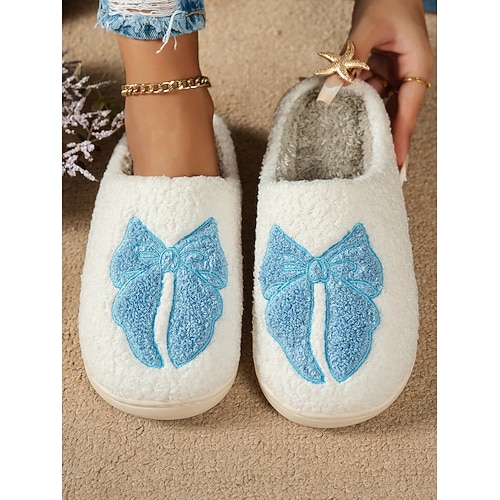 pantofole bianche da donna con fiocco rosso - pantofole da interno morbide e calde, perfette per le accoglienti serate invernali e la mattina di Natale
