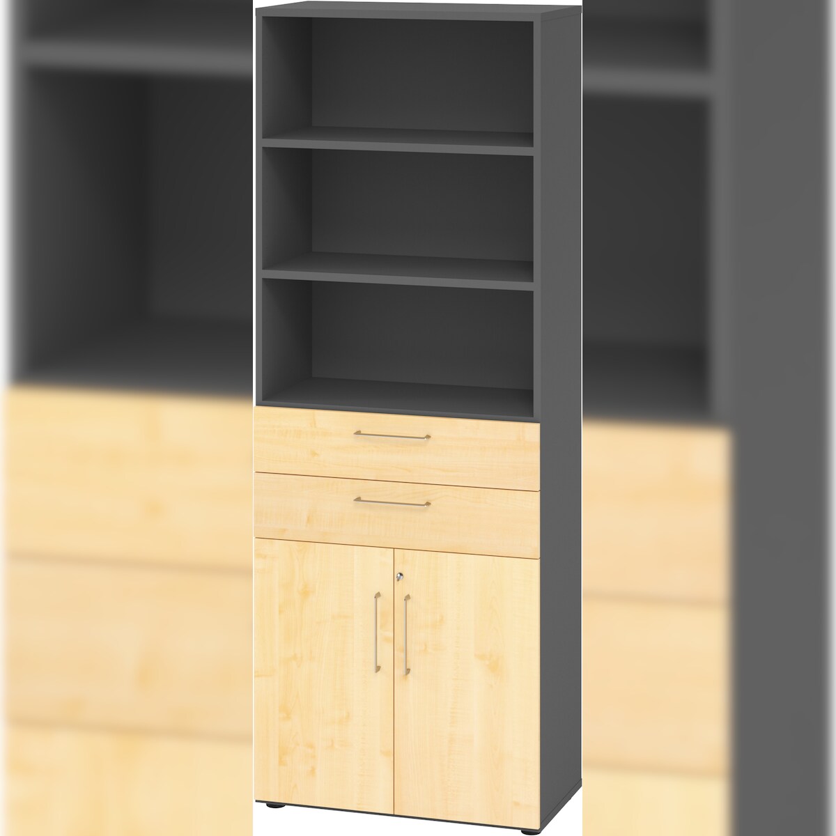 B2B Partner Büroschrank mit kombinierten Schubladen PRIMO GRAY, 800 x 420 x 1781 mm, grau/Nussbaum
