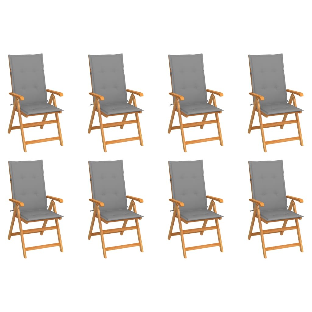 vidaXL Verstellbare Gartenstühle mit Auflagen 8 Stk. Massivholz Teak