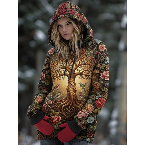 Felpe con cappuccio da donna in stile vichingo, grafiche, gotiche, casual, a maniche lunghe, con cappuccio, normali, da indossare tutti i giorni, casual, con coulisse, stampa gialla, primavera autunno