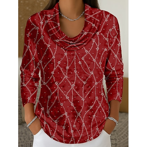 Per donna Tunica Maglietta Floreale Grafico Geometrico Elegante Vintage Moda Manica Lunga Scollo a Cascata Top Regolari Quotidiano Uscire Weekend Stampato A Strati Blu Rosso Viola Verde Autunno